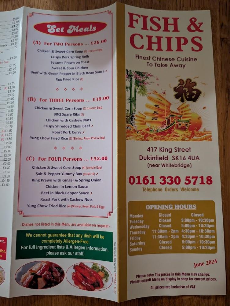 Nestled in the heart of Dukinfield, Fish & Chip Shop stands as a local gem for food lovers. This establishment has become a staple in the community, attracting a steady flow of customers eager for tasty takeaway options. The location on King Street is easily accessible, making it a go-to spot for those seeking delicious meals at reasonable prices, typically ranging from £10 to £20. With an inviting atmosphere, this spot is perfect for any dining occasion, whether you opt for a leisurely dine-in or a quick takeaway. The friendly staff ensures that every visit feels special and personal. What's more, the establishment maintains high accessibility standards, featuring wheelchair-accessible seating and convenient parking options. Guests appreciate the casual vibe that makes it an excellent place for gathering, savoring hearty meals with family or friends. In addition, it remains open every day of the week, providing flexibility for dining plans.